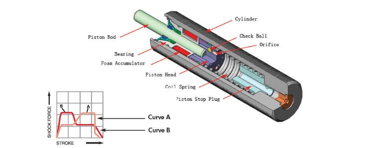 Low Pressure multiple orifice shock absorbers canprovide progressive or self-compensating damping,depending on the impact conditions.